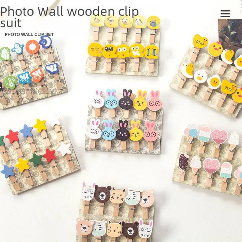 Fancy wooden clips with fun creature designs for kids’ crafts, décor, and photo display.
