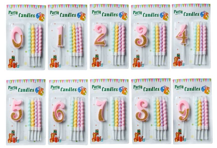Colorful candle set featuring four vibrant colors and one number candle, perfect for customizing birthday cakes and making celebrations special.
