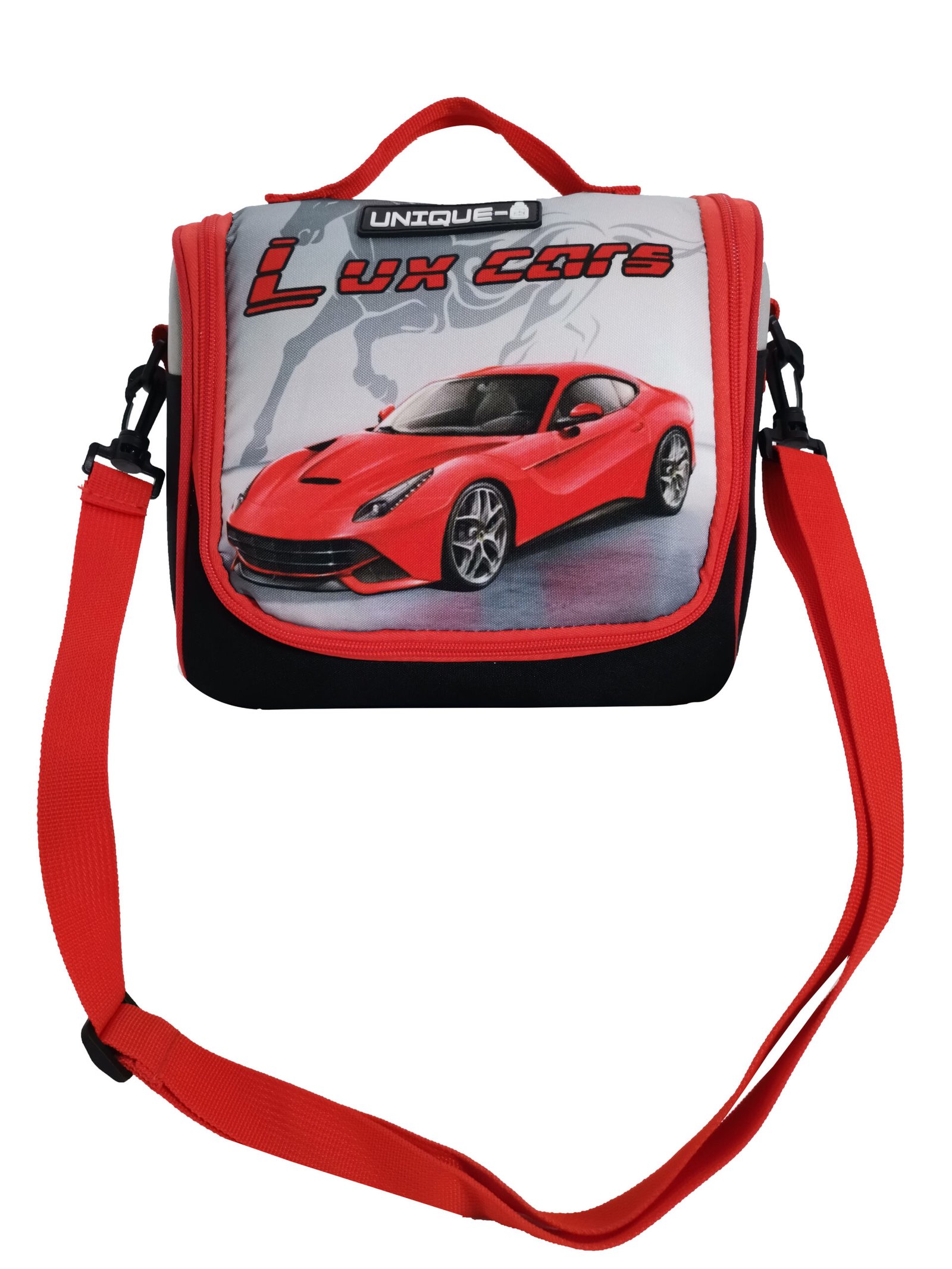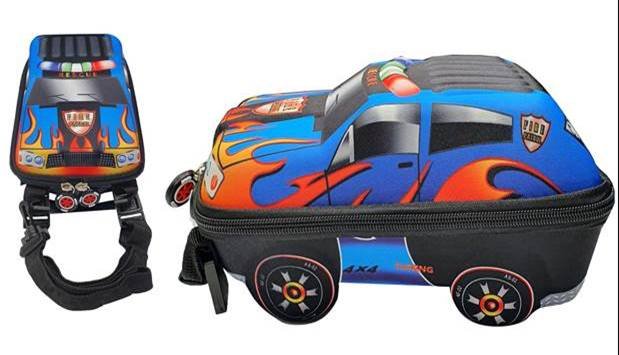 Fun car-shaped insulated lunch bag with adjustable straps. Lightweight, durable, and perfect for kids on the go.
