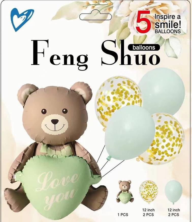Includes 1 large bear-shaped foil balloon (105.5 cm × 66.5 cm) and 4 round 12-inch foil balloons. Perfect for spreading joy at birthdays, baby showers, and cheerful celebrations.