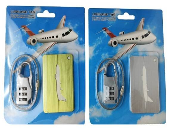 Durable luggage tag with metal lock and name card – ideal for secure and easy identification during travel.