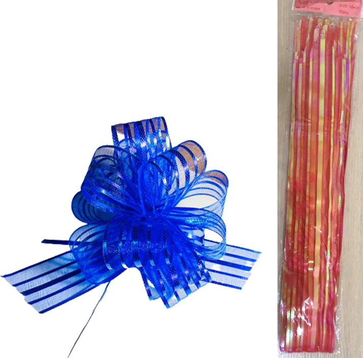 50mm Pull Flower Ribbon – Set of 10 easy-to-use ribbons that form elegant flower bows with a pull, perfect for gift wrapping and decorations.
